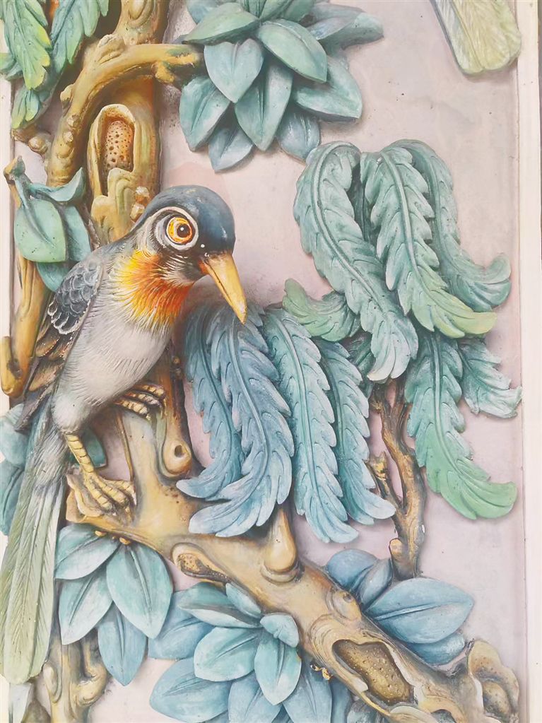 在海南的灰塑作品中,留白的運(yùn)用同樣有“以無勝有”的視覺效果?!盎宜茏髌飞饰宀拾邤?,一眼看過去容易產(chǎn)生錯(cuò)亂的感覺,這時(shí)候留白就顯得很重要。”寰海閣酒店負(fù)責(zé)人符燕舞說,灰塑作品有明顯的寫實(shí)風(fēng)格,所呈現(xiàn)的物象紛繁多彩。如果要將灰塑作為一種藝術(shù)品保留下來,用留白的手法為作品增添美感十分必要。