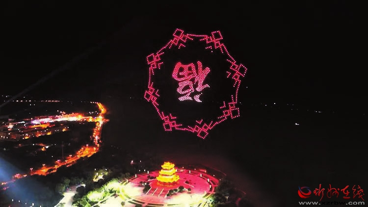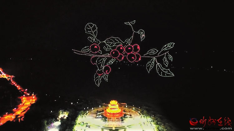 8月18日晚,1000架無人機帶著河曲人民的美好憧憬緩緩升空,它們在空中排列成各種圖案,仿佛一群訓練有素的舞者,在夜空中翩翩起舞。一幅幅精美的畫面映入眼簾,它們或是河曲地域特色的風景畫,或是寓意著美好祝愿的吉祥圖案。隨著無人機不斷變換位置,這些圖案在空中緩緩流轉,讓人目不暇接。從騰飛的鳳凰到栩栩如生的巨龍,再到河燈、海紅果、白天鵝、麒麟以及璀璨的煙花、喜慶的福字,每一幅畫面都充滿了創(chuàng)意,為觀眾呈現了一場視覺盛宴。這些畫面與大美河曲的夜景相呼應,更加凸顯出河曲的美好。