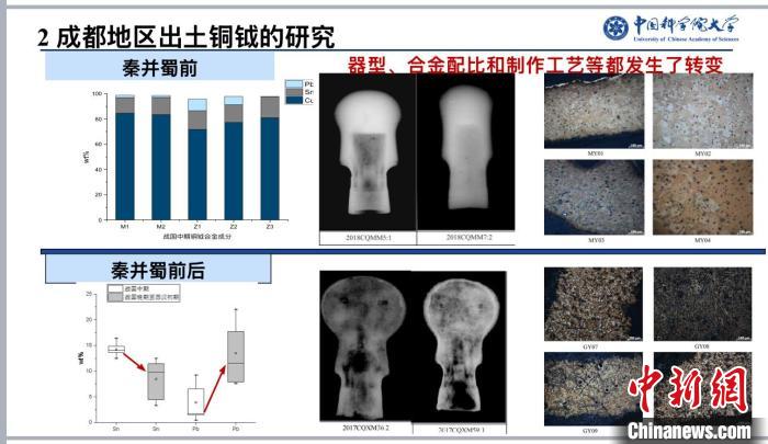 羅武干介紹說(shuō),此前罕見從銅冶金考古視角對(duì)秦并蜀進(jìn)行解讀工作。他們這次利用類型學(xué)、X光成像、合金成分及金相顯微組織、微量元素、鉛同位素等分析方法對(duì)秦并蜀前后蜀地銅鍪與銅鉞兩類青銅器進(jìn)行分析,研究發(fā)現(xiàn)秦并蜀后,蜀地銅鉞與銅鍪的器型、合金技術(shù)、制作工藝及銅、鉛礦源均發(fā)生一定程度的變化。