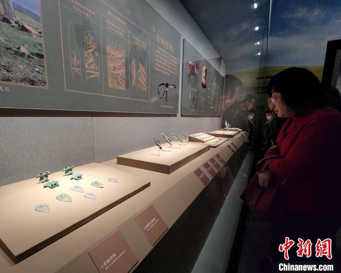 觀眾參觀鄂爾多斯青銅文明展。趙曉 攝 “鄂爾多斯青銅器具有鮮明的地域特征,幾乎對所有草原動物都進行過深入刻畫。”鄂爾多斯市博物院院長竇志斌受訪時介紹,鄂爾多斯青銅器上的絕大多數(shù)動物圖案源自北方游牧生態(tài),少量鳳鳥、龍紋等受中原禮制文化影響。這些器物不僅是實用性強的生產(chǎn)生活工具,更是一種藝術(shù)品,展現(xiàn)北方游牧民族對美的追求。 竇志斌稱,觀眾參觀展覽時,可從兵器、車馬器、生產(chǎn)生活工具、裝飾品四個方面欣賞了解鄂爾多斯青銅器。“鄂爾多斯自古是各民族廣泛交往交流交融的典型地區(qū),這在許多文物上也有體現(xiàn)。如鳳鳥造型的刀劍及配飾體現(xiàn)了草原文化與中原文化的交流融合?!?/p>