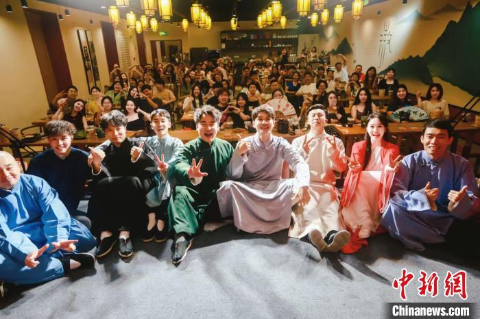 “之前只在線上聽過傳統(tǒng)相聲,來了才知道相聲還能這么玩,我錄制了視頻發(fā)在朋友圈,好幾個(gè)朋友都說要來打卡?!薄癦世代”張倩是這家相聲館的“老粉”,每周從不缺席。“我還‘安利’給了丈夫和孩子,我們經(jīng)常一家三口來聽相聲,孩子現(xiàn)在都能說兩句貫口了?!睆堎徽f。