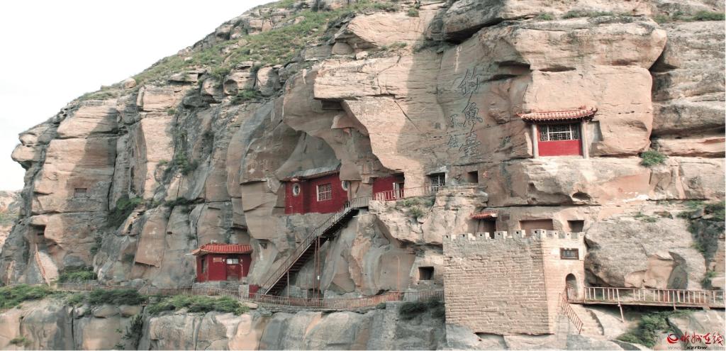 故城石窟位于保德縣楊家灣鎮(zhèn)故城村西1500米、黃河?xùn)|岸石崖上。清順治二年(1645),由陳奇瑜構(gòu)筑,歷時(shí)三年建成,建有呂仙祠等建筑。故城石窟坐東向西,占地面積約600平方米。向南石砌的古堡式門洞,門洞上方匾書“釣魚(yú)臺(tái)”,頂部砌有女兒墻垛口。山壁上有大小不等的10孔人工開(kāi)鑿的石窟。
