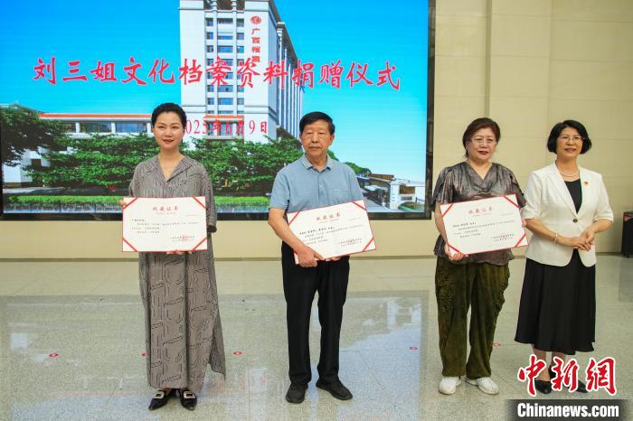 當天活動現場還舉行了劉三姐文化檔案捐贈儀式,柳州《劉三姐》創(chuàng)作組曾昭文、龔邦榕、鄧凡平、牛秀四位作家簽名的創(chuàng)作于1991年的彩調劇《劉三姐》(第九方案)封筆之作的手稿原件,也由其中的作者曾昭文之子捐贈。另外,廣西戲劇院、“劉三姐”扮演者傅錦華女兒傅彬彬等捐贈了相關“劉三姐”照片,廣西壯族自治區(qū)檔案館領導為捐贈者們頒發(fā)了收藏證書。