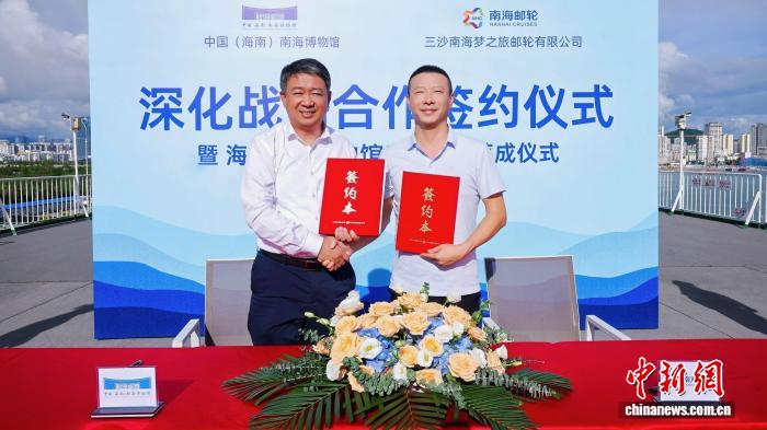 10月13日,全國首家海上流動(dòng)博物館升級改造落成儀式在三亞舉行。圖為中國(海南)南海博物館與三沙南海夢之旅郵輪有限公司簽約。(三沙南海夢之旅郵輪有限公司 供圖)