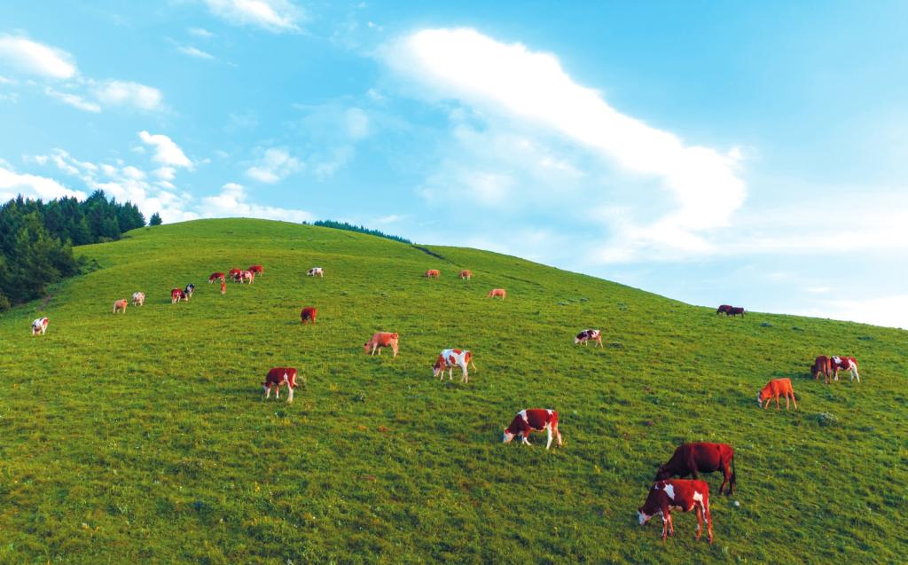 春之韻,萬(wàn)類復(fù)蘇的萌動(dòng)。廣袤的草甸上,花海如潮,在暖陽(yáng)的照耀下,每一片花瓣都閃爍著生命的光澤,氣息芬芳,沁人心脾。牧人趕著羊群上山,清脆的蹄聲像一串輕快的鼓點(diǎn),叩醒了山谷的春天。最是晨昏時(shí)分,山間乳白的嵐氣與村落青灰的炊煙交織共舞,林間清脆的鳥(niǎo)語(yǔ)與牧人悠長(zhǎng)的吆喝聲和鳴,共同勾勒出一幅生動(dòng)而和諧的畫卷。