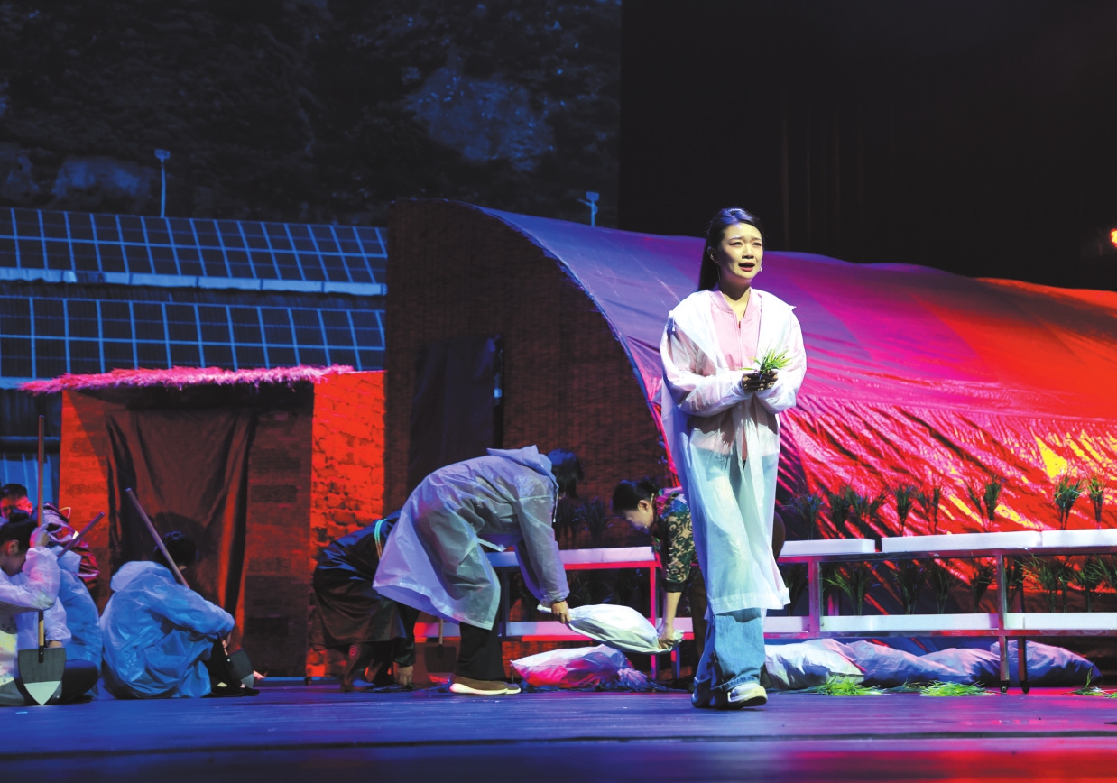 話劇這種藝術(shù)樣式,要抵達(dá)一個(gè)成熟的高度,不容易,需要十分強(qiáng)烈的藝術(shù)表現(xiàn)力和高度的矛盾沖突呈現(xiàn)。能不能讓觀眾看的時(shí)候動(dòng)容,看完還能留下印象,就有了施展拳腳的余地。把人物置于矛盾的漩渦,才能突出人物形象。這個(gè)適用于小說創(chuàng)作,同樣適用于劇本塑造。只有在矛盾的漩渦中,人物才能成長,觀眾才能買賬。這一點(diǎn),《三棵樹下》做得可圈可點(diǎn)。無論是一開始大雨對蔬菜大棚的極大毀壞,還是曹民財(cái)不折不撓的堅(jiān)持“退股”,甚至是城里男友的不理解、提出分手,都是加劇矛盾、讓農(nóng)學(xué)專業(yè)畢業(yè)的女大學(xué)生李小雨這個(gè)人物形象更加豐滿圓熟的重要手段。