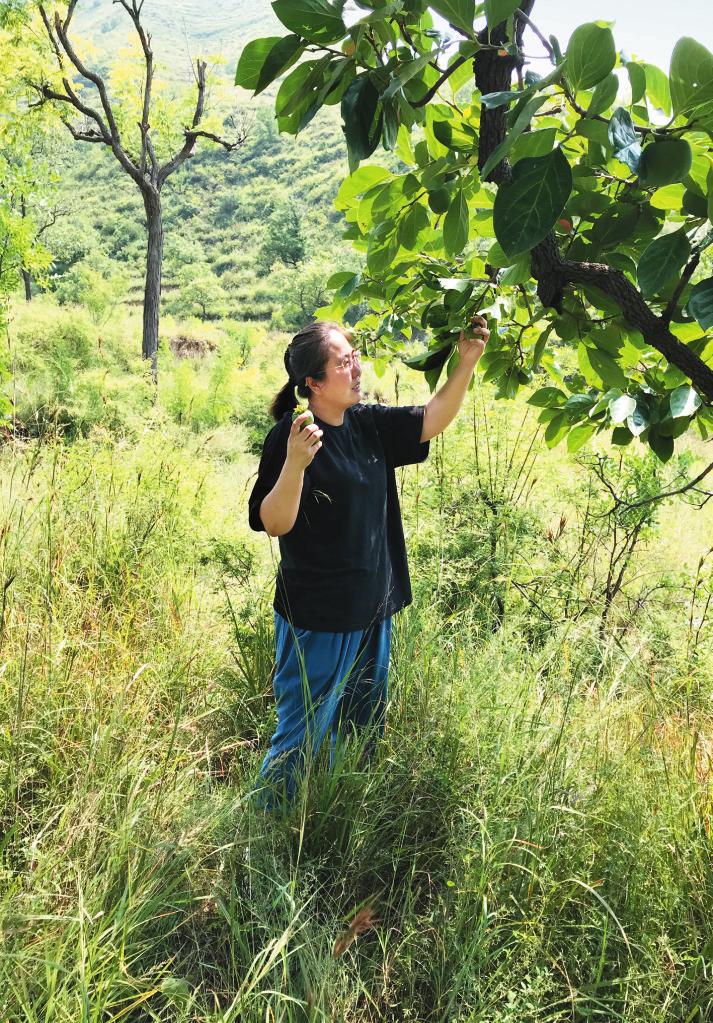 趙慧在田間尋找適合的染材