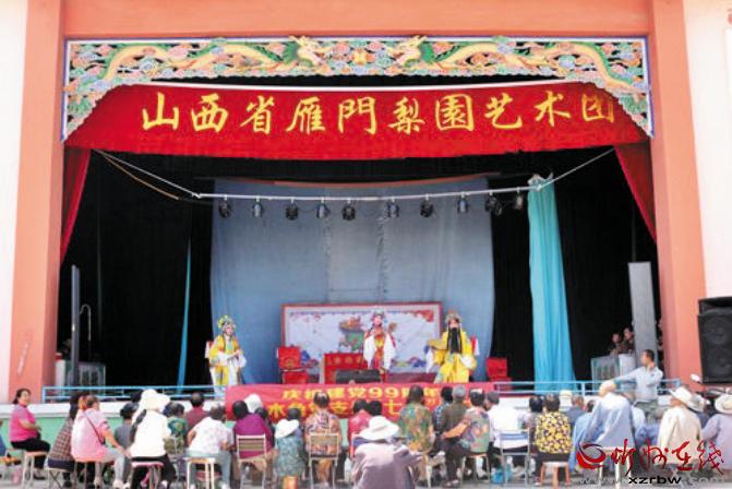 本報(bào)訊 薪火相傳梨園情,送戲下鄉(xiāng)頌黨恩。7月3日上午10時(shí)許,代縣峨口鎮(zhèn)上木角村委會大院的“瑞祥舞臺”上,鑼鼓鏗鏘,喧樂縈耳,熱鬧非凡,代縣雁門梨園藝術(shù)團(tuán)(原代縣峨口退休老干部戲迷樂開心藝術(shù)團(tuán))正在這里演出,與該村黨員干部群眾共慶黨的99周年華誕,歌頌黨的恩情。演職人員以群眾喜聞樂見的形式,抒發(fā)老干部愛黨、愛國,永遠(yuǎn)跟黨走的豪情壯志。