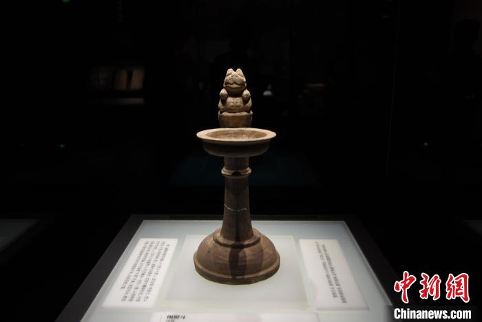 7月16日,河南洛陽(yáng)漢魏洛陽(yáng)故城遺址博物館,西晉時(shí)期“招財(cái)貓”造型的陶熨斗亮相。 王宇 攝