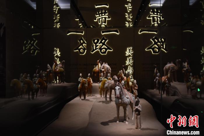 7月16日,河南洛陽(yáng),漢魏洛陽(yáng)故城遺址博物館“一帶一路”展區(qū)勾勒出中外商旅不絕的場(chǎng)景。 王宇 攝