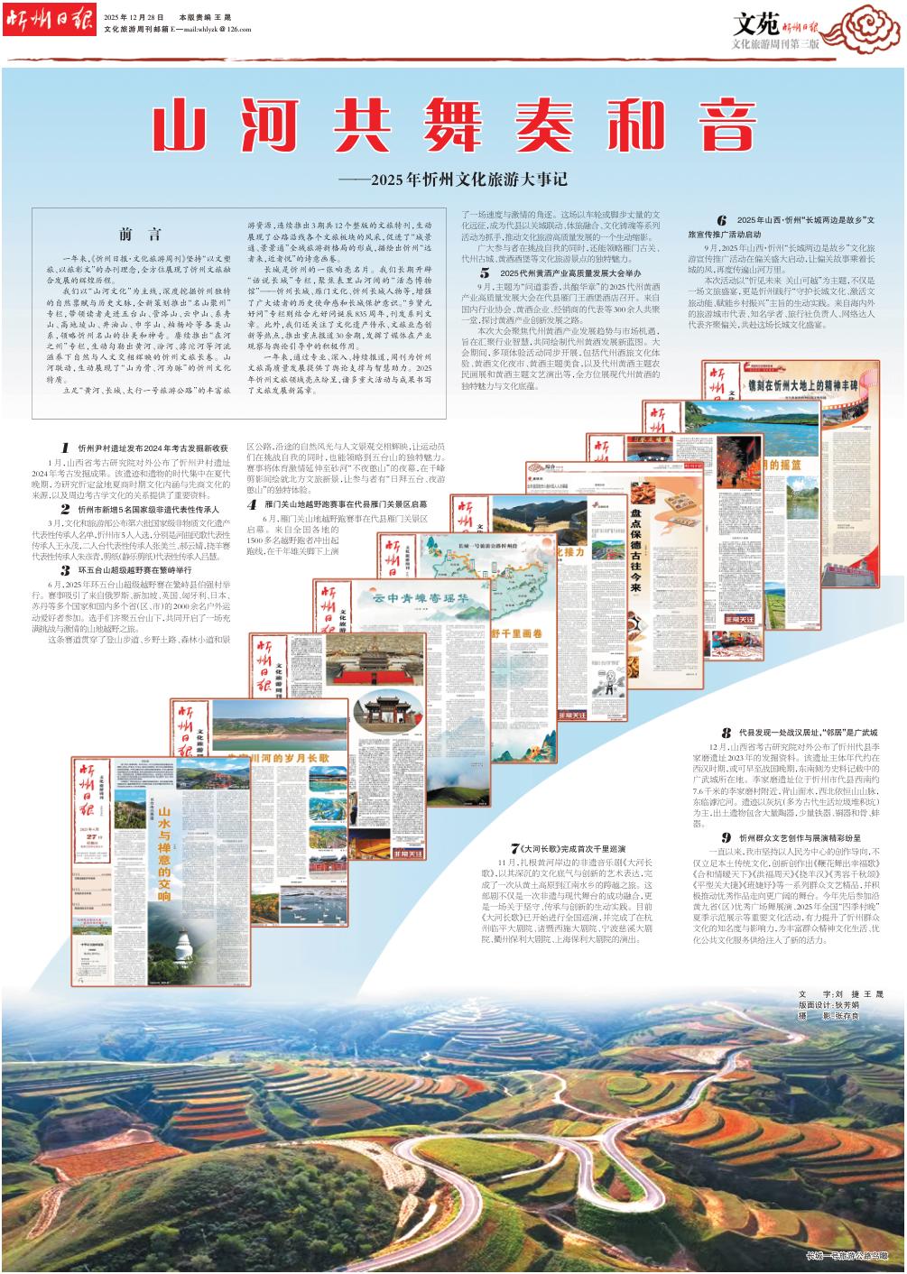 一年來,《忻州日報(bào)·文化旅游周刊》堅(jiān)持“以文塑旅、以旅彰文”的辦刊理念,全方位展現(xiàn)了忻州文旅融合發(fā)展的輝煌歷程。