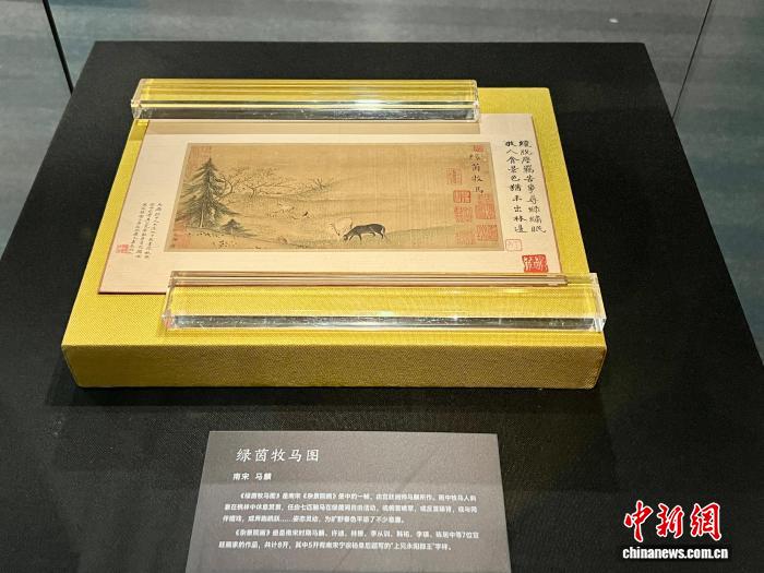 2月9日,重慶中國(guó)三峽博物館新春文化系列展覽之生肖文化展——《“?!瘪R上來(lái)》完成布展。圖為國(guó)家一級(jí)文物《綠茵牧馬圖》。中新社記者 鐘旖 攝