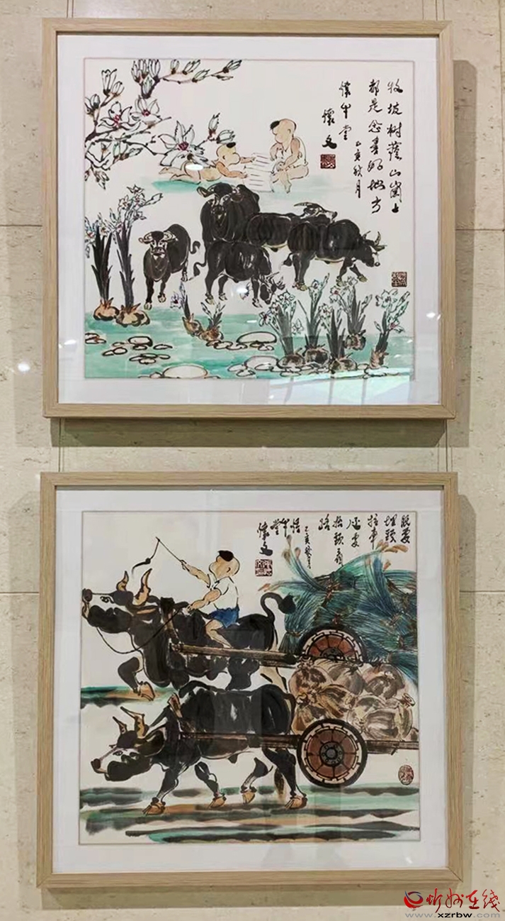 上千平方米的展廳內(nèi),299幅尺幅不同、姿態(tài)各異的以牛為表現(xiàn)主題的國畫作品,組成了一個牛的世界,多角度展現(xiàn)了牛的精神。