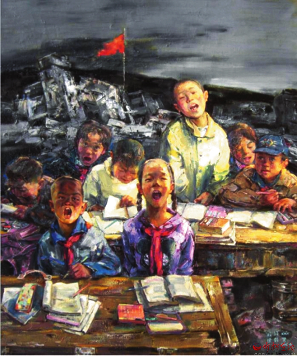 同樣表現(xiàn)地震題材的另一幅作品《震后復(fù)課》則展示出另外一種浪漫情懷,發(fā)人深省,令人感慨萬(wàn)千。在尚未處理完畢的地震廢墟上,孩子們真誠(chéng)地開(kāi)始了希望的追求,展示著大震壓不垮的人性力量和災(zāi)后最具震撼力的希望。是的,紅旗在哪里,精神支撐就在哪里。孩子是希望,是未來(lái)。在孩子們的臉上,沒(méi)有恐懼和悲哀,沒(méi)有茫然與無(wú)助,有的只是對(duì)知識(shí)的渴望,對(duì)未來(lái)的憧憬。一個(gè)角落的復(fù)課場(chǎng)景,映射著中華民族偉大復(fù)興的精神力量。 邢晨聲 文 (責(zé)任編輯:盧相?。?/span> |