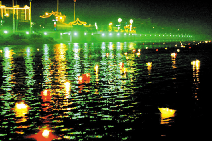 中元節(jié)這一天也有放河燈的習(xí)俗,最早源于印度佛教,傳入中國,是由寺院興起,起初有盂蘭盆會,在寺院里,誦經(jīng)供食,焚化紙船,謂之法船,可以“渡出冥孤獨(dú)之魂”,也是一種宗教儀式。后來這種形式,逐漸傳入民間社會,有了在河流中放河燈的習(xí)俗。試想天上人間,天上明月高空,繁星點(diǎn)點(diǎn),地下一排排的紙船,在暗夜的黃河流水中猶如萬點(diǎn)螢光,向著遙遠(yuǎn)的神秘方向漂流,讓人產(chǎn)生一種無限的想象,因此,在中元節(jié)放河燈,就是自己和心靈的一種對話,也是活著的人們對逝去的人們的一種懷念方式。當(dāng)然河曲河燈節(jié),在祭祖、祭禹的同時,也加入了特定群體。那些在黃河水患中離去的人,那些在戰(zhàn)亂中逝去的人,那些在走西口謀生中失蹤的人,都成為被祭奠的亡靈,體現(xiàn)了其節(jié)日的地域性。