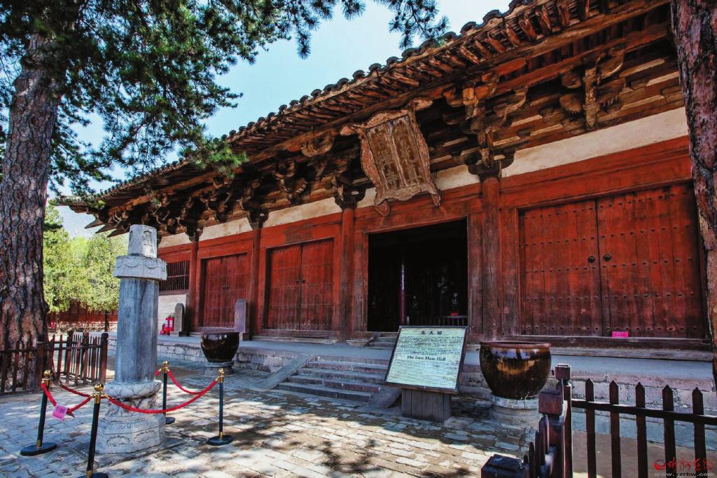 “除殿本身為唐代木構(gòu)外,殿內(nèi)尚有唐塑佛菩薩十余尊,梁下有唐人題名墨跡,栱眼壁有唐代壁畫(huà),此四者一已稱(chēng)絕,而四藝集于一殿,誠(chéng)我國(guó)第一國(guó)寶也!”這是中國(guó)著名建筑學(xué)家梁思成對(duì)五臺(tái)山佛光寺的贊譽(yù)。