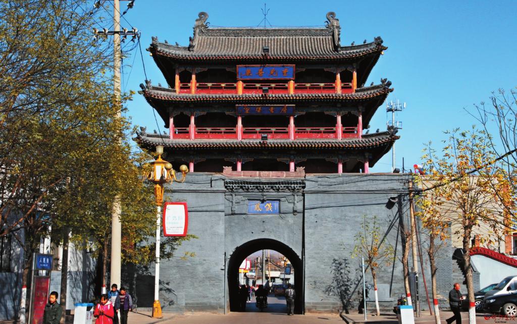 寧武,明成化二年(1466年)設(shè)關(guān),弘治十一年置守御千戶所。萬歷三十四年(1606年)城墻包磚,并筑東西關(guān)城。東西為街,南北為巷,共41條街巷。那雄偉高大的城墻,把城池包裹得嚴(yán)嚴(yán)實(shí)實(shí)?!秾幬涓尽酚涊d,周長(zhǎng)七里一百二十步,高三丈六尺。東門曰“仁勝”,西門曰“仁和”,南門曰“迎熏”,北門曰“鎮(zhèn)朔”,上建飛樓。1606年,寧武道郭光復(fù)又筑東西關(guān)城,西關(guān)門曰“永寧”,其南出者曰“阜財(cái)”:東關(guān)門曰“久安”,其南出者曰“解慍”。萬歷二年(1574年)筑護(hù)城墩于城北山上,基高二丈,基上為臺(tái),臺(tái)上有樓三重,登之可眺百里。乾隆六年(1741年),東關(guān)門樓圮,知府魏元樞重修,曰“望華”,并修南北二角樓。城南接鳳凰山,寧武人又呼之為“鳳城”。1937年,日軍侵占寧武縣城,這些城樓遭到嚴(yán)重毀壞。