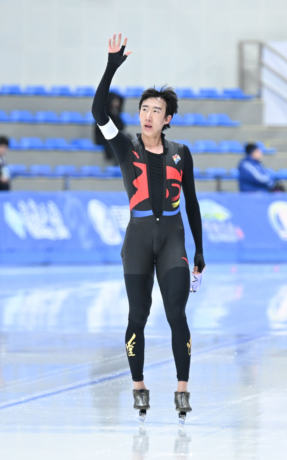 1月14日,內(nèi)蒙古隊(duì)選手韓梅在賽后向觀眾致意。新華社記者 連振 攝