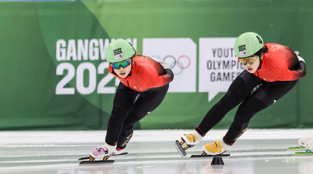 1月21日,李金恣(右)和楊婧茹在比賽中。新華社記者 姚琪琳 攝 江陵冰上運(yùn)動館繼續(xù)前一日的火爆氛圍,中國隊(duì)也繼續(xù)前一日的出色表現(xiàn)。張心喆獲得短道速滑男子1000米金牌。李金恣和楊婧茹繼前一日包攬女子1500米冠亞軍后,又包攬了女子1000米前兩名。只不過她倆這次互換了金銀牌,李金恣奪金,楊婧茹摘銀。這也是這三名選手在本屆冬青奧會上各自的第二枚獎(jiǎng)牌。