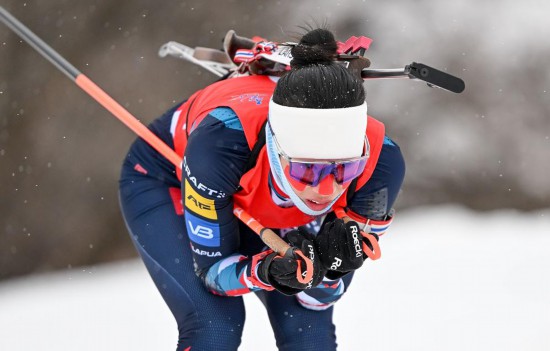 進入第三圈,孟繁棋率先滑完進行立射,但脫靶1次,在150米的“懲罰”賽道上加罰1圈,導(dǎo)致她落后于褚源蒙。最后一輪孟繁棋立射再次脫靶,褚源蒙則在最后兩輪10發(fā)立射全中,最終以領(lǐng)先孟繁棋51秒6的優(yōu)勢率先沖過終點,拿到她在“十四冬”賽場的第三金。孟繁棋獲得銀牌,遼寧隊的楊連紅摘得銅牌。