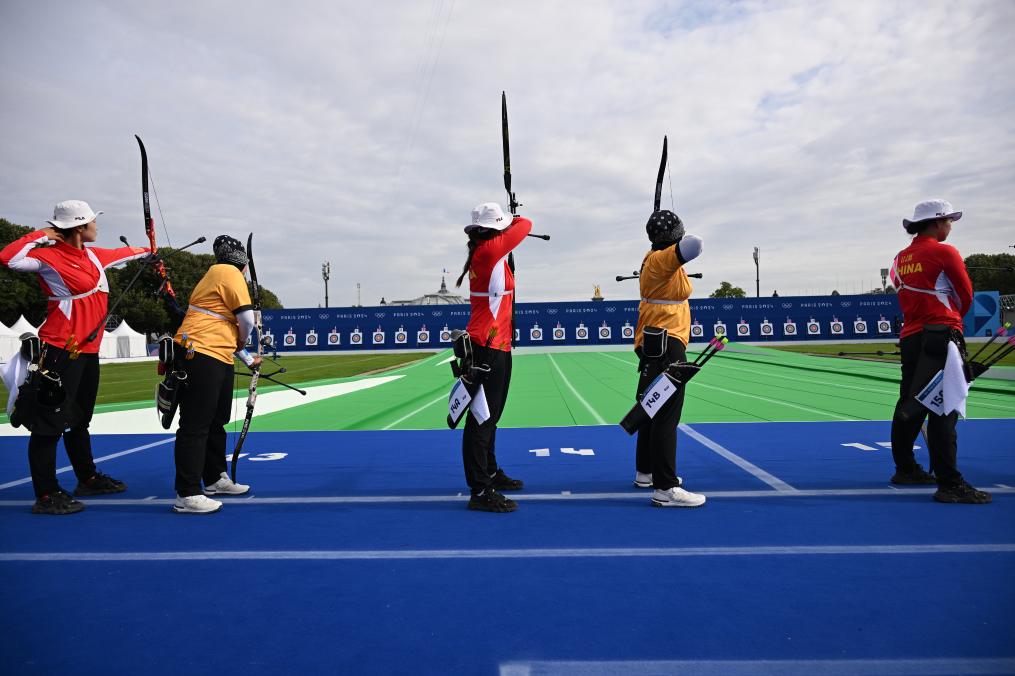 當(dāng)日上午,巴黎榮軍院上空晴空朗朗,64名女子射箭運(yùn)動員在這處歷史建筑旁展開爭奪。中國隊派出楊曉蕾、安琦軒、李佳蔓3人出戰(zhàn)女子個人排名賽。