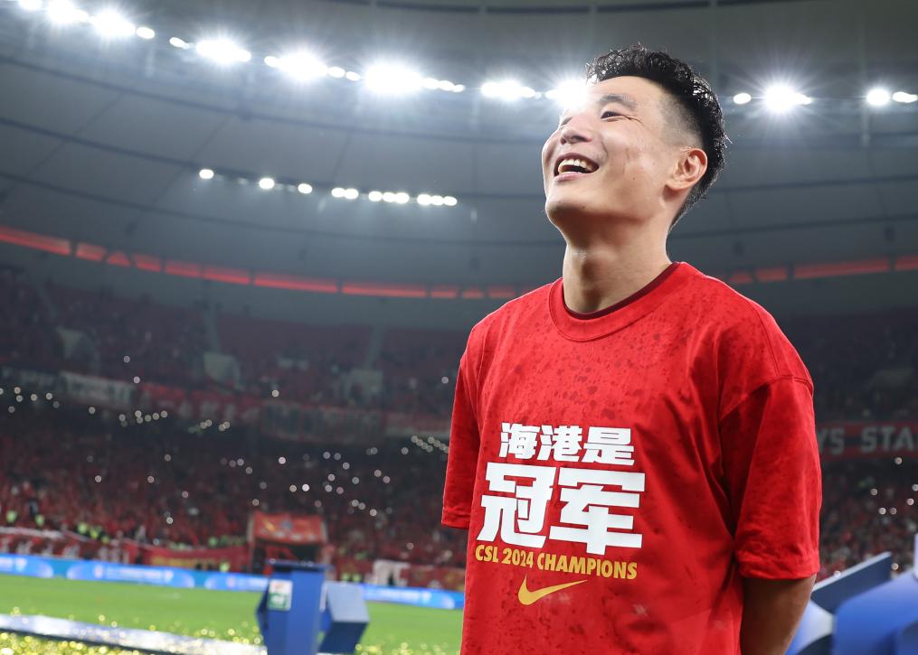 2024年11月2日,上海海港隊(duì)球員武磊在頒獎(jiǎng)儀式后。新華社記者 賈浩成 攝