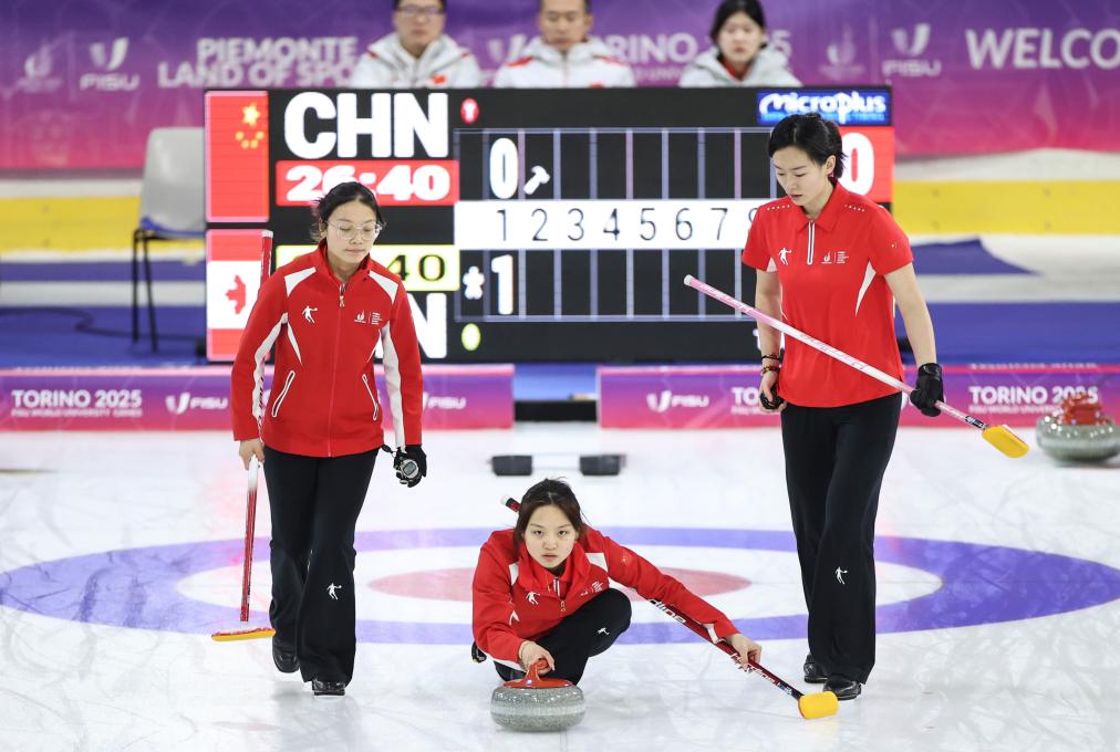同樣在塔佐利冰上運(yùn)動(dòng)中心進(jìn)行的還有冰壺比賽,由北京體育大學(xué)學(xué)生尹子怡、渠偌萱、譚斯婷、裴君杭、葉紫萱組成的中國女隊(duì),先是在白天的比賽中以4:6不敵日本隊(duì),隨后又在晚間的最后一輪循環(huán)賽中以3:6不敵加拿大隊(duì),最終以5勝4負(fù)的成績排名循環(huán)賽第五,無緣四強(qiáng)。