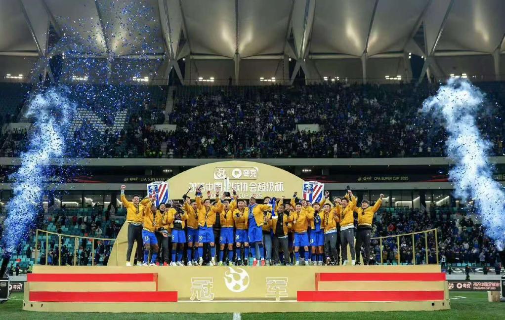 2月7日,上海申花隊(duì)在頒獎儀式上慶祝。圖片來自上海申花足球俱樂部官方微博