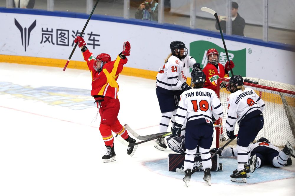 比賽伊始,雙方攻勢(shì)積極。第三分鐘,荷蘭隊(duì)打出精妙配合,科拉德門(mén)前補(bǔ)射得手,冰球從中國(guó)隊(duì)門(mén)將詹佳慧腿下滑入球網(wǎng),比分變?yōu)?:1。