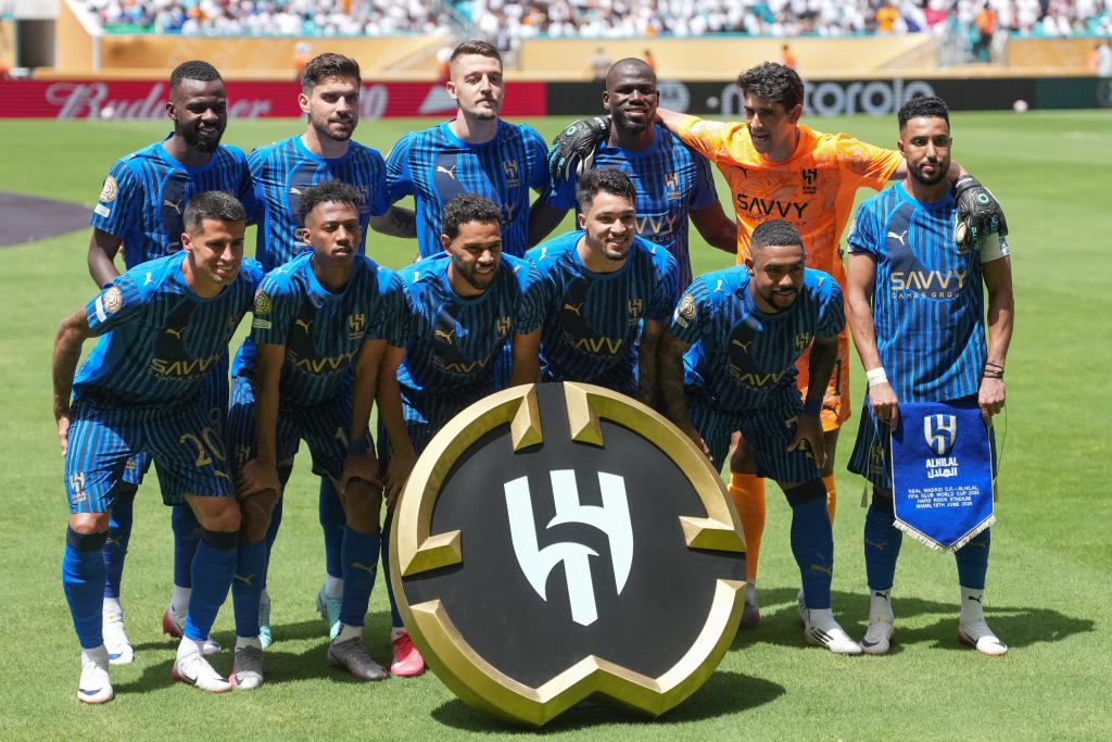6月18日,利雅得新月隊首發(fā)球員在賽前合影。新華社記者 黃宗治 攝