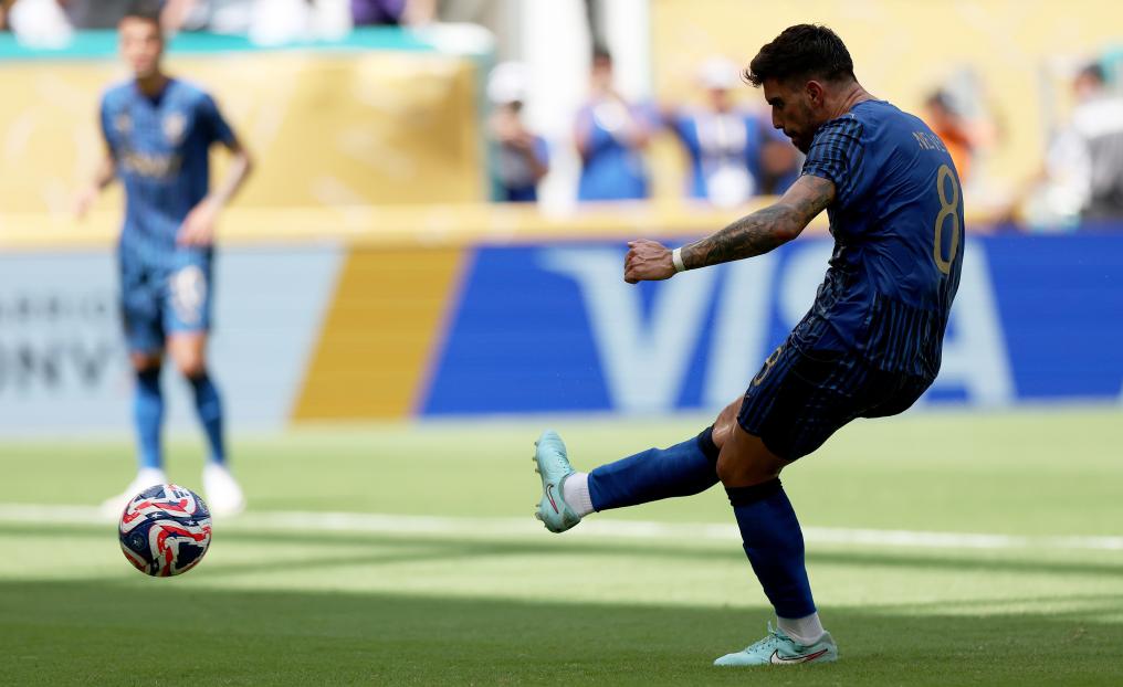 6月18日,利雅得新月隊球員魯本·內維斯在比賽中主罰點球破門。新華社記者 李明 攝