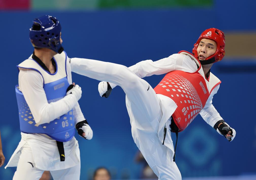 男子80公斤以上級決賽中,廣東隊選手王要錫在主場迎戰(zhàn)山東隊選手劉朝陽。首局,王要錫憑借中段和高位連續(xù)得分,以12:4輕松取勝。第二局,王要錫率先完成側(cè)踢得分,劉朝陽在追分過程中出現(xiàn)犯規(guī),最終王要錫再下一局,以總比分2:0獲勝,為廣東隊再添一金。
