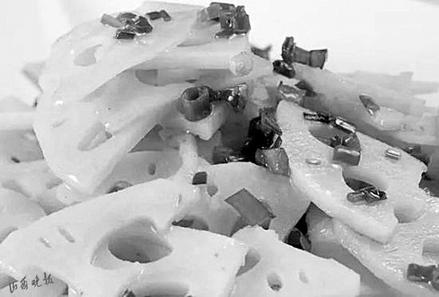 民俗流傳中,人們借助于蓮藕的特征和諧音賦予了它更多的吉祥內(nèi)容。古太原地區(qū)的傳統(tǒng)筵席“八碟八碗”中,有一款坐底大菜——涼拌蓮菜(本地人叫藕根大片)。之所以如此安排,完全就是沿用了諧音吉祥的民俗習(xí)慣?!芭骸迸c“偶”諧音,藕根大片占個“偶”,有佳偶天生的美好寓意,故而成了八大碗中必不可少的一道菜品。“蓮菜”又諧音“連財”,意思是菜上完了,還有扯不斷、沒完沒了的財運,八碗帶財一起來。寓意如此美好,自然人人都滿意。