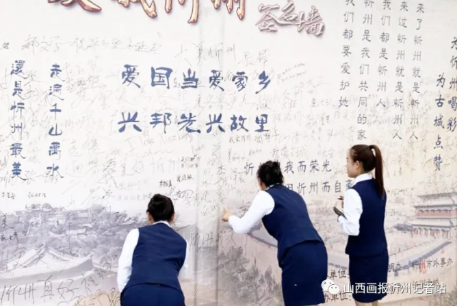 “走遍千山萬水,還是忻州最美”“來了忻州就是忻州人,來過忻州就是忻州人”“愛國(guó)當(dāng)愛家鄉(xiāng) 興邦先興故里”……墻上的一句句充滿情感、生動(dòng)質(zhì)樸的語言,寫滿了對(duì)祖國(guó)、對(duì)家鄉(xiāng)的濃濃熱愛,引起了過往游客路人的深深共鳴。游人們有的在這些文字旁簽名,有的合影留念,有的文思泉涌寫下一條條深情寄語,盡情表達(dá)著對(duì)忻州發(fā)展的美好祝福和共建全國(guó)文明城市的堅(jiān)定信心。