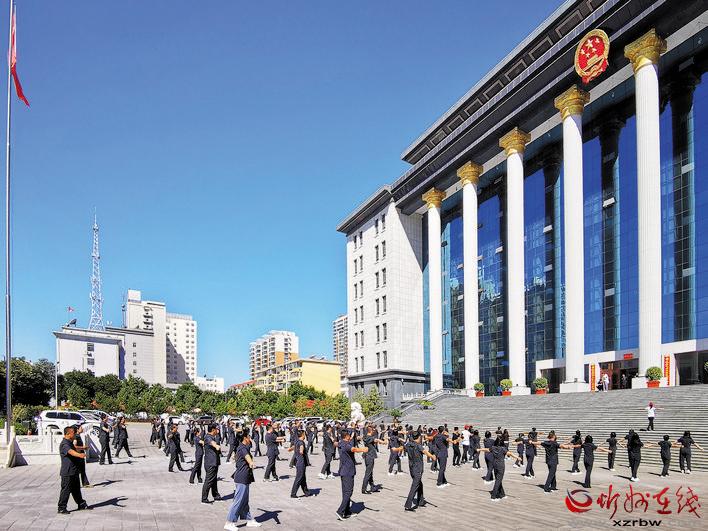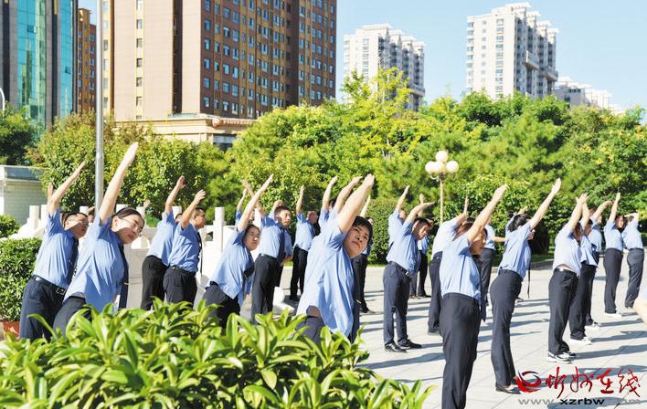 9月3日,市體育局在全市組織開展的“文明忻州、全民健身”系列活動拉開了帷幕。圖為作為我市首批健身示范單位的市公安局、市人民檢察院、市中級人民法院正在組織全體干警職工做工間操。(張存良 攝影報道)