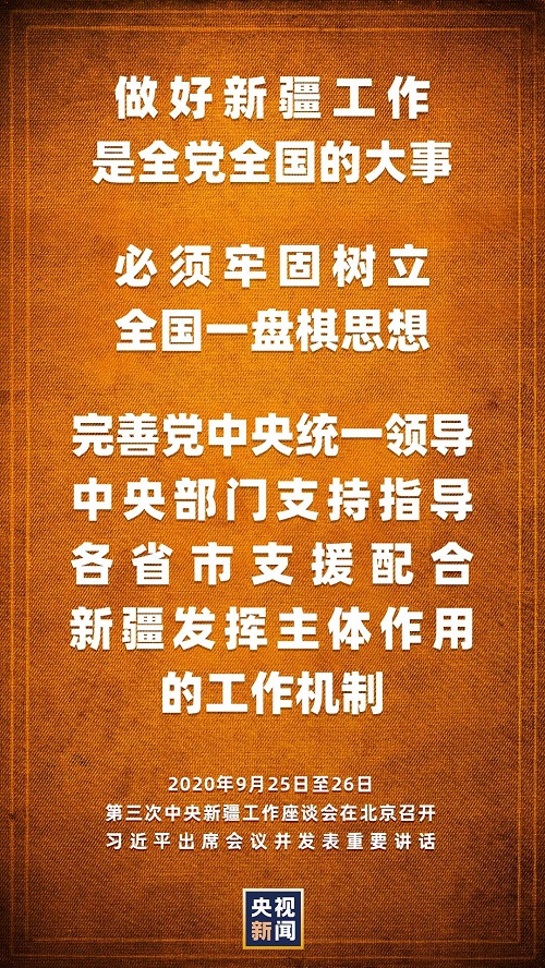 第三次中央新疆工作座談會(huì)9月25日至26日在北京召開。中共中央總書記、國家主席、中央軍委主席習(xí)近平出席會(huì)議并發(fā)表重要講話。