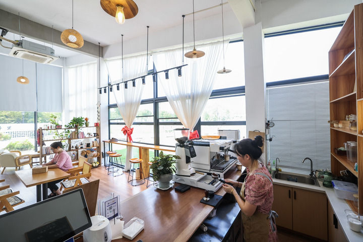 2025年8月27日在浙江省湖州市長興縣虹星橋鎮(zhèn)宋高村稻香伴日營地內(nèi)拍攝的咖啡屋。這是宋高村做優(yōu)全域土地整治后的農(nóng)文旅新嘗試,集餐飲、旅游、農(nóng)業(yè)和文化于一體。新華社記者 徐昱 攝