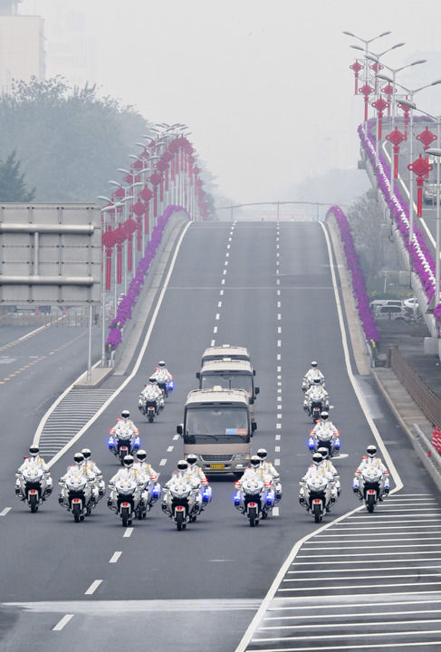 2024年9月29日,中華人民共和國(guó)國(guó)家勛章和國(guó)家榮譽(yù)稱號(hào)頒授儀式在北京人民大會(huì)堂隆重舉行。這是國(guó)家勛章和國(guó)家榮譽(yù)稱號(hào)獲得者集體乘坐禮賓車,由國(guó)賓護(hù)衛(wèi)隊(duì)護(hù)衛(wèi)前往人民大會(huì)堂。新華社記者 高潔 攝 會(huì)場(chǎng)外,鮮艷的紅毯從大會(huì)堂東門鋪下,肩槍禮兵莊嚴(yán)佇立,朝氣蓬勃的少年揮動(dòng)出紅旗的海浪。 會(huì)場(chǎng)內(nèi),兩名旗手高擎五星紅旗,三名禮兵手捧共和國(guó)勛章、友誼勛章和國(guó)家榮譽(yù)稱號(hào)獎(jiǎng)?wù)?,步履雄健,氣?shì)如虹。