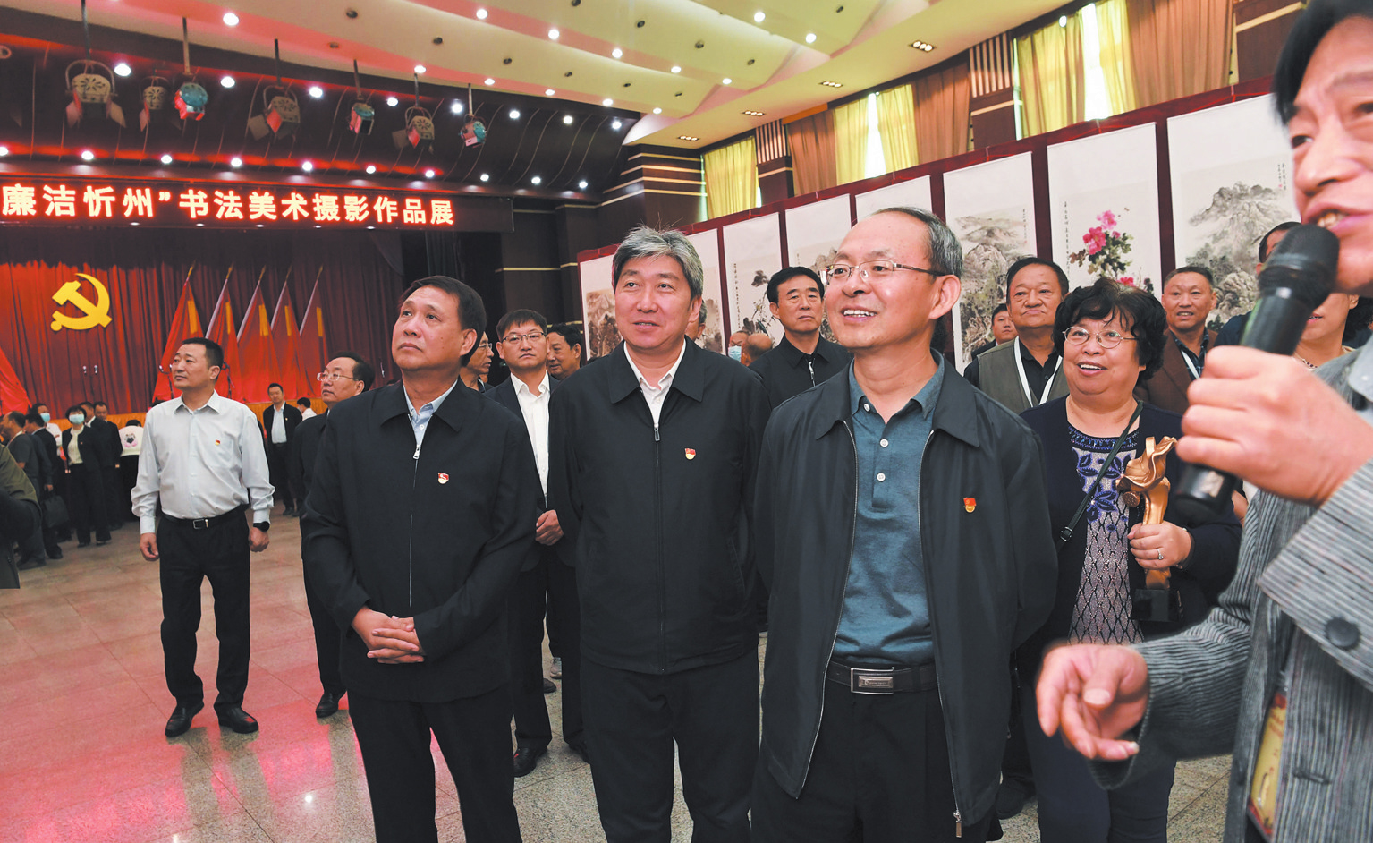 開展儀式上,市領(lǐng)導(dǎo)為迎國慶“清風雅頌·廉潔忻州”書法美術(shù)攝影作品展一等獎、二等獎、三等獎的獲獎作者頒發(fā)了獎杯和證書。