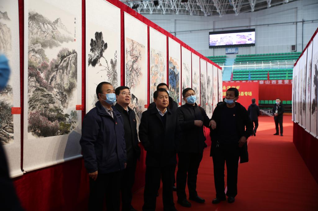活動(dòng)現(xiàn)場,專業(yè)人員為縣領(lǐng)導(dǎo)講解美術(shù)類參展作品的詳細(xì)內(nèi)容。