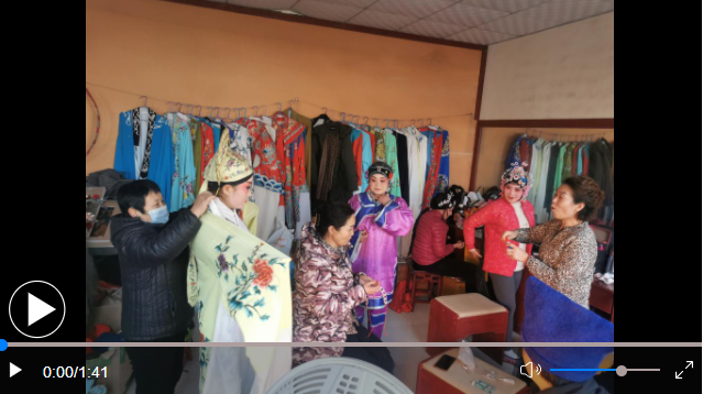 戴上胡子、穿上狀元袍、蹬上靴子、圍上披風(fēng)……山東省濟南市章丘區(qū)文祖街道青野村戲臺旁邊的化裝間里,村民們正在化裝。過一會兒,她們將會變成老生、花旦,為十里八村的村民們奉獻一場五音戲表演。