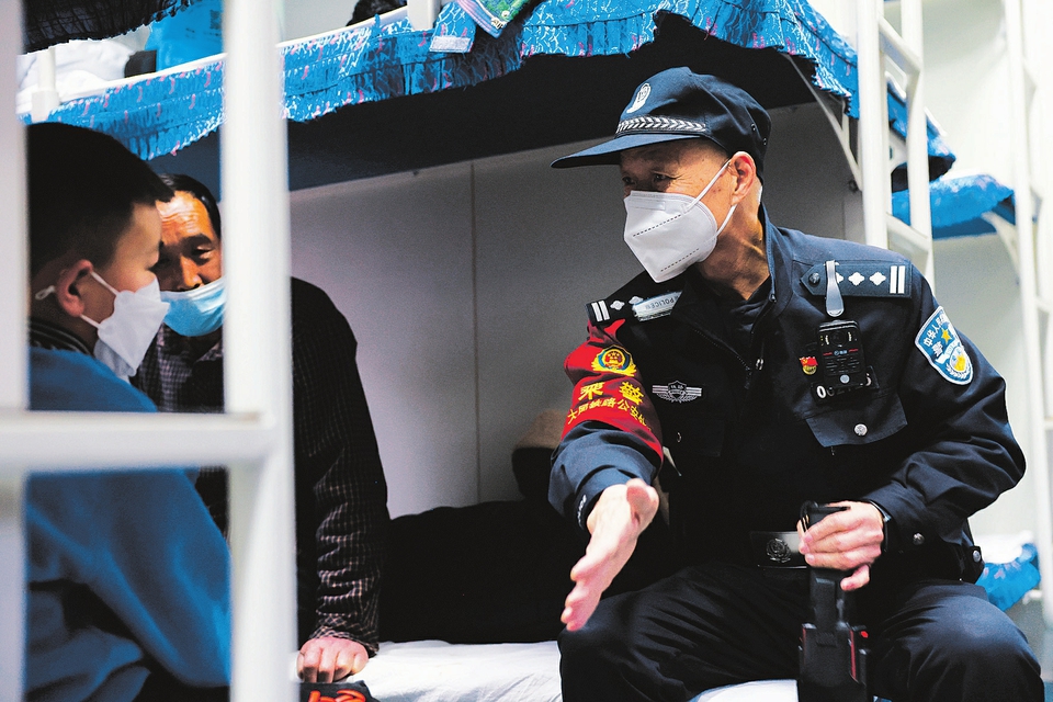 6時(shí)20分,列車緩緩駛出,老屈開始對(duì)整列車廂進(jìn)行巡視,在8號(hào)車廂,看見有人將羽絨衣掛在衣帽鉤上,老屈現(xiàn)場(chǎng)演示了小偷用自己衣服做遮擋和掩護(hù)盜竊的作案伎倆,并叮囑大家看管好自己隨身攜帶的物品,以免丟失?!氨U下每偷陌踩?,是乘警的天職,在車上,我們要不斷地對(duì)重點(diǎn)部位進(jìn)行檢查,對(duì)旅客進(jìn)行安全宣傳,尤其是到了春運(yùn)時(shí)候,我更得做好本職工作,讓每一個(gè)乘車旅客平安回家。”屈保良說(shuō)道。