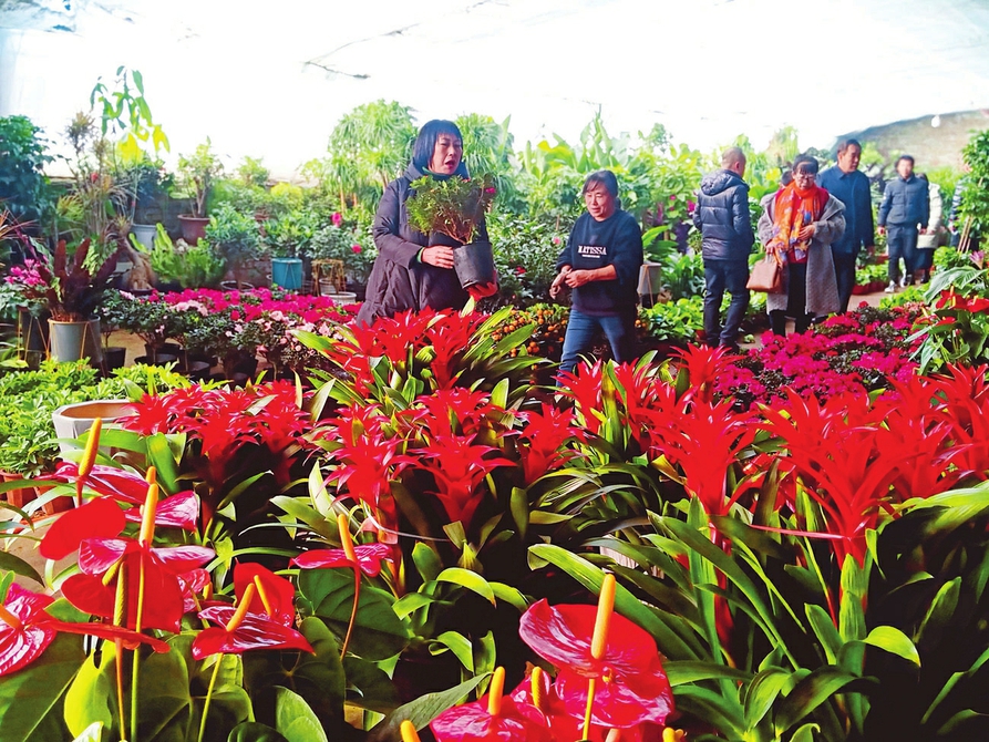 2月8日,原平市柳巷村花卉大棚里的鮮花爭(zhēng)奇斗艷,前來(lái)選花的人絡(luò)繹不絕,為來(lái)年圖個(gè)好彩頭,也為過(guò)年增添儀式感。(趙春曉 攝)
