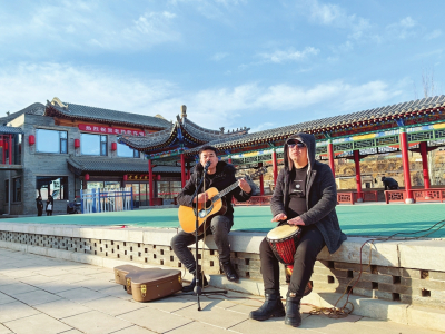 圖④音樂愛好者在陽泉市郊區(qū)蔭營古鎮(zhèn)街邊演唱。