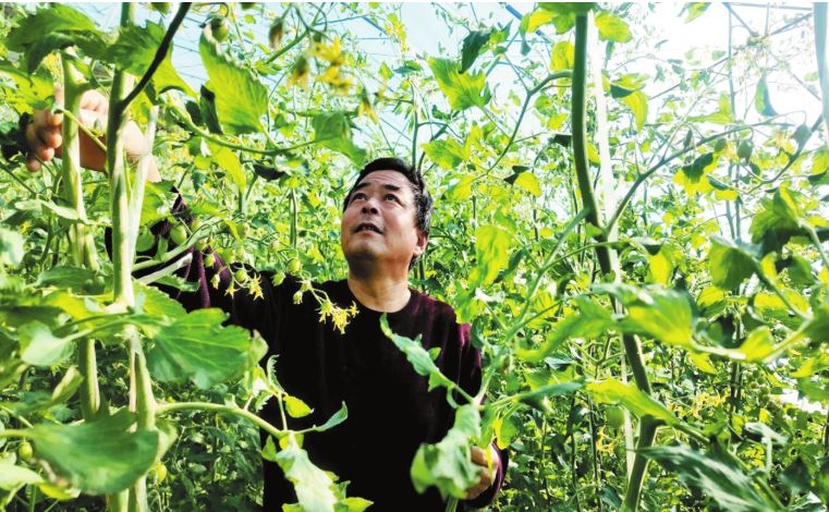 武文光察看圣女果長勢。本報記者 劉 捷攝