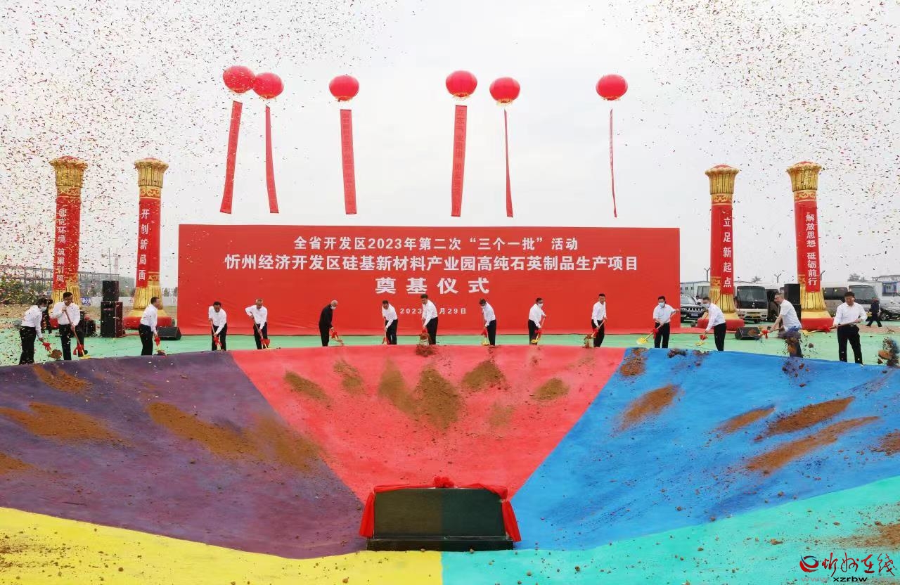 與省主會(huì)場(chǎng)同步,李建國(guó)主持舉行了忻州市“簽約一批”代表項(xiàng)目集中簽約活動(dòng)。忻州經(jīng)濟(jì)開(kāi)發(fā)區(qū)特種硅基新材料智能生產(chǎn)項(xiàng)目、原平經(jīng)濟(jì)技術(shù)開(kāi)發(fā)區(qū)污廢水處理環(huán)保成套設(shè)備及配套產(chǎn)品生產(chǎn)項(xiàng)目、繁峙經(jīng)濟(jì)技術(shù)開(kāi)發(fā)區(qū)15萬(wàn)千瓦光伏發(fā)電項(xiàng)目、定襄經(jīng)濟(jì)技術(shù)開(kāi)發(fā)區(qū)無(wú)憂(山西)數(shù)字金融產(chǎn)業(yè)園項(xiàng)目、岢嵐經(jīng)濟(jì)技術(shù)開(kāi)發(fā)區(qū)宇航固體動(dòng)力岢嵐試驗(yàn)中心項(xiàng)目、靜樂(lè)現(xiàn)代農(nóng)業(yè)產(chǎn)業(yè)示范區(qū)羊肚菌研發(fā)種植推廣實(shí)驗(yàn)基地建設(shè)項(xiàng)目、神池現(xiàn)代農(nóng)業(yè)產(chǎn)業(yè)示范區(qū)太平莊生態(tài)養(yǎng)殖示范基地建設(shè)項(xiàng)目、五臺(tái)現(xiàn)代農(nóng)業(yè)產(chǎn)業(yè)示范區(qū)植物蛋白飲品及休閑食品生產(chǎn)項(xiàng)目、五寨現(xiàn)代農(nóng)業(yè)產(chǎn)業(yè)示范區(qū)大辛莊繁育場(chǎng)項(xiàng)目、偏關(guān)生態(tài)文化旅游示范區(qū)生態(tài)農(nóng)業(yè)建設(shè)項(xiàng)目等10個(gè)代表項(xiàng)目分兩批進(jìn)行現(xiàn)場(chǎng)簽約。簽約儀式結(jié)束后,與會(huì)人員赴“開(kāi)工一批”代表項(xiàng)目——“硅基新材料產(chǎn)業(yè)園高純石英制品生產(chǎn)建設(shè)項(xiàng)目”現(xiàn)場(chǎng)培土奠基。隨后赴重點(diǎn)建設(shè)項(xiàng)目——“10GW智能光伏電池生產(chǎn)基地項(xiàng)目”實(shí)地觀摩,該項(xiàng)目聚焦“奮戰(zhàn)7.30、8.30、9.28”目標(biāo),分階段確保項(xiàng)目竣工投產(chǎn)。