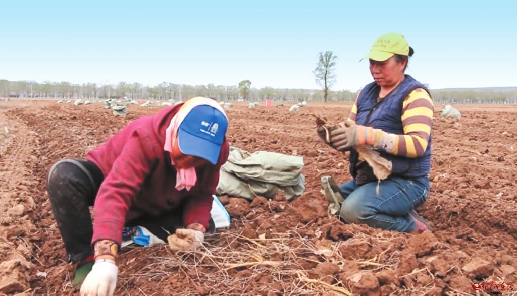 隨著機械的轟鳴聲響起,一根根健壯的黃芪苗破土而出,田間地頭彌漫著淡淡的藥香。藥農們分工明確,協同作戰(zhàn),有的精心撿拾,有的根據黃芪苗的粗細進行分揀和捆綁,共同勾勒出一幅生機勃勃的春景圖。