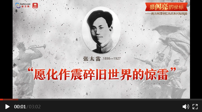 編者按:清明憶英烈,忠魂貫長(zhǎng)空。4月1日至5日,南方網(wǎng)、粵學(xué)習(xí)客戶端策劃推出“最閃亮的坐標(biāo)”系列短視頻,通過(guò)挖掘廣東革命烈士的光輝事跡,與大家一起緬懷英烈、學(xué)習(xí)英烈。今天推出第二篇《張?zhí)祝涸富髡鹚榕f世界的驚雷》。