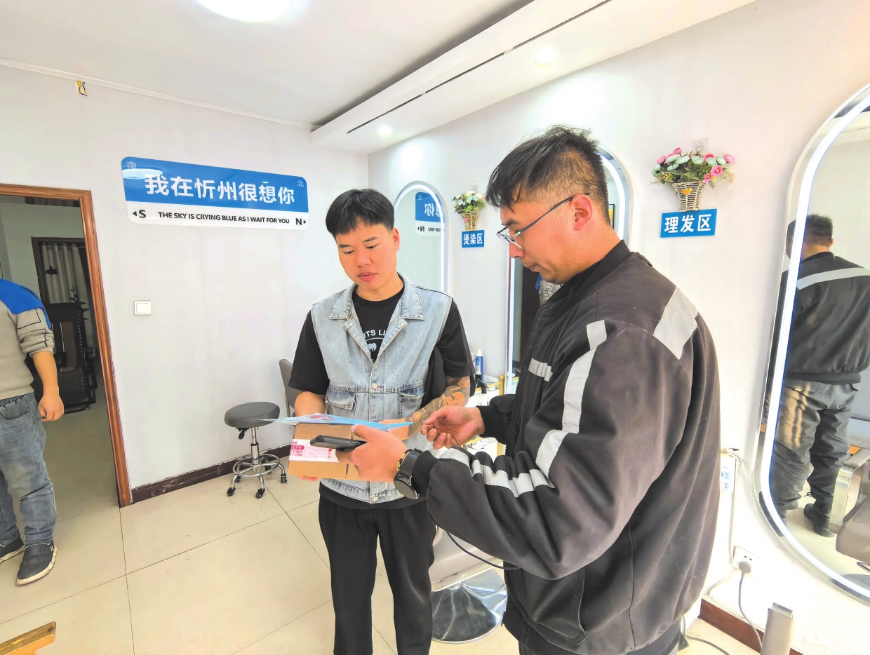 忻府區(qū)快遞小哥參與“順手捎帶”志愿服務活動。