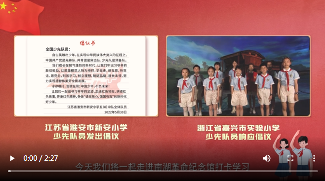 現(xiàn)代快報訊(記者 于露 王新月)2022年5月30日,是江蘇省淮安市新安小學(xué)少先隊員們收到習(xí)近平總書記回信一周年的日子。近日,他們向全國少先隊員發(fā)出“跟著習(xí)爺爺?shù)淖阚E學(xué)黨史”的倡議。浙江省嘉興市實驗小學(xué)的少先隊員們第一時間響應(yīng)倡議,追尋習(xí)爺爺?shù)淖阚E,打卡南湖革命紀念館,講述紅色故事,傳承紅色精神。